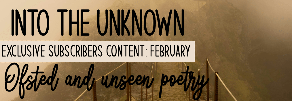 The following page provides all the links needed for the content for February. This month we focus on unknown elements of being an English teacher – unseen poetry and Ofsted visits.