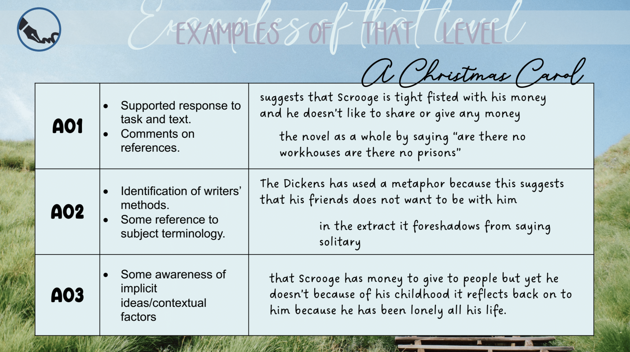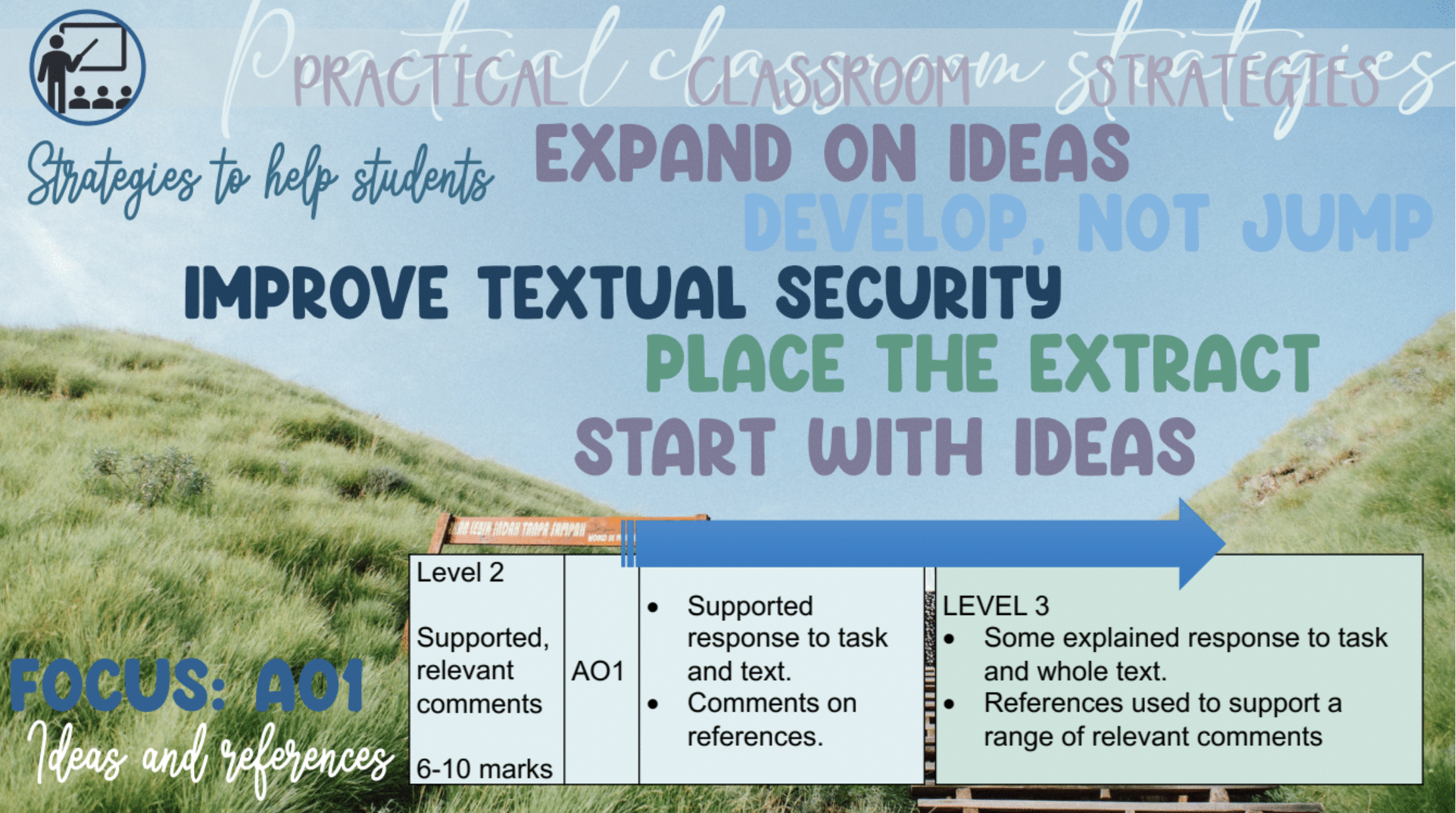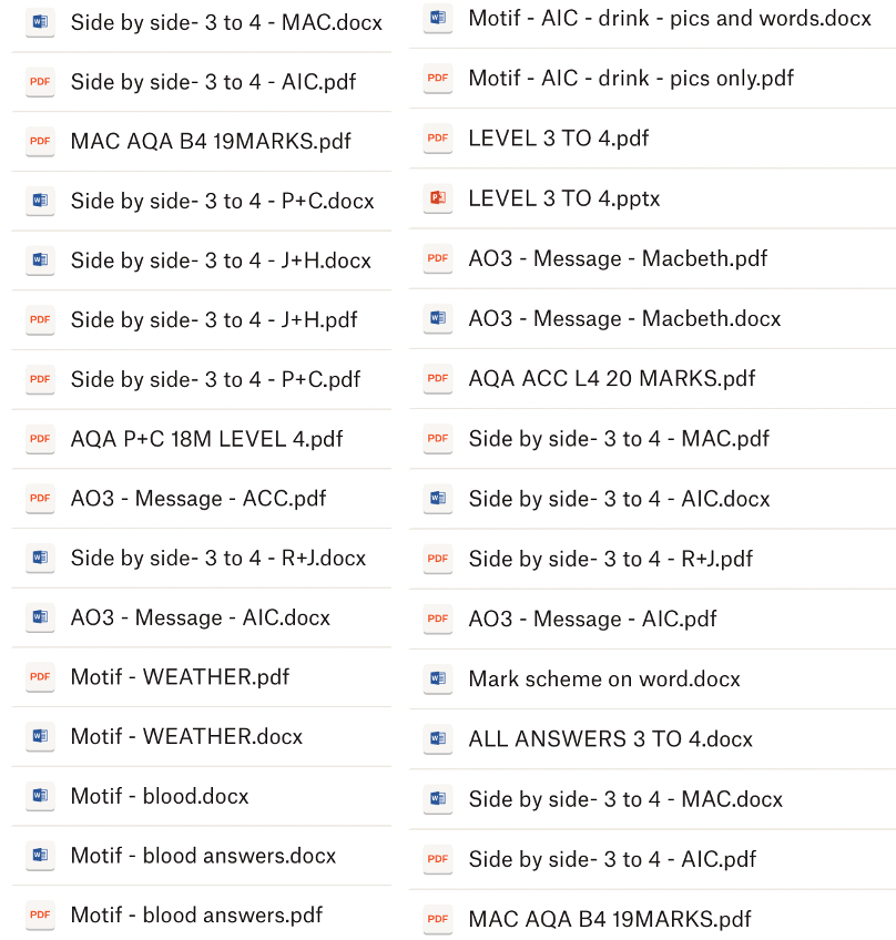 This series is focused on the AQA mark scheme, and how to move students through each level. There are three sessions, which are £5 each, or cost £15 for the set of three. You can also purchase this session paired with the core text pack, at a discounted rate – more information here. The sessions include a deconstruction of each level, examples of work from a range of texts, then work at the next level, with comparisons made. They each include teaching strategies for moving to the level above. We begin with a session on level 2 moving into level 3, so moving grade 3 into grade 4. Then we look at moving from level 3 to 4, with a focus on improving clarity, and therefore getting grade 4 into grade 5/6. The final session looks at moving students to a 7+ – this is the moving to level 5 session. To purchase, return to the shop page. If you’d like to look at a range of reviews for the sessions, click here.