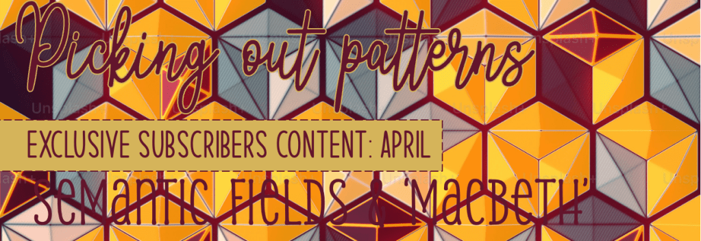 The following page provides all the links needed for the content for April. This month we focus on deconstructing patterns in texts – semantic fields for language and patterns in Macbeth for literature.