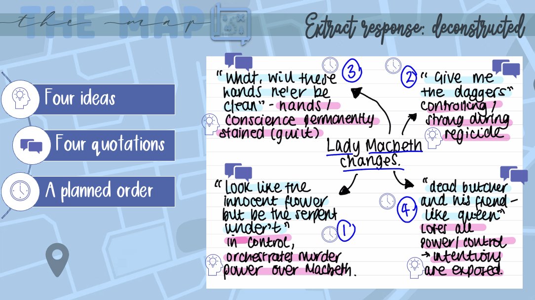 This includes how to teach a line of argument, or thesis statement, to students, and then how to implement this in the planning process. We also spend some time on what an introduction should look like with examples from students gaining marks in level 6 of the lit mark scheme.